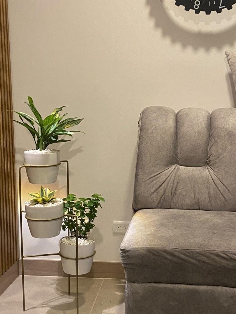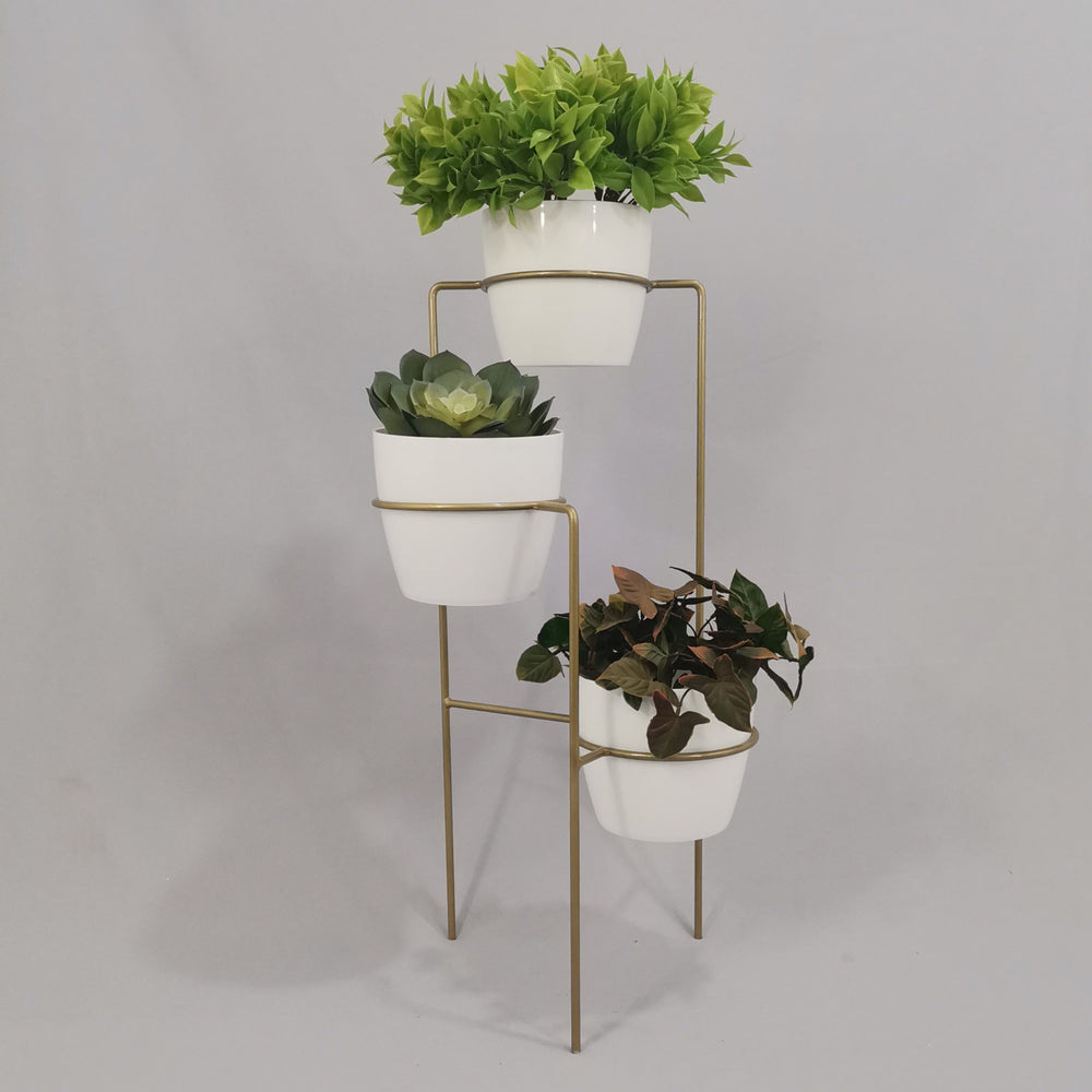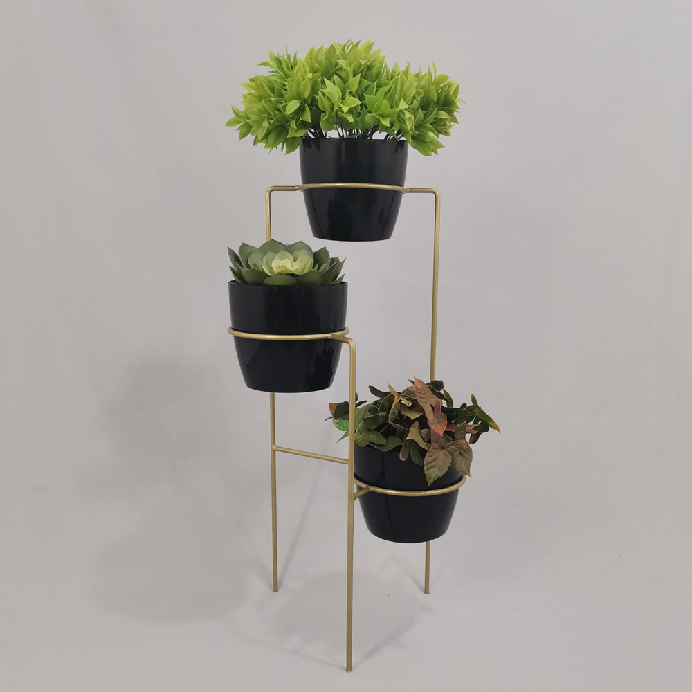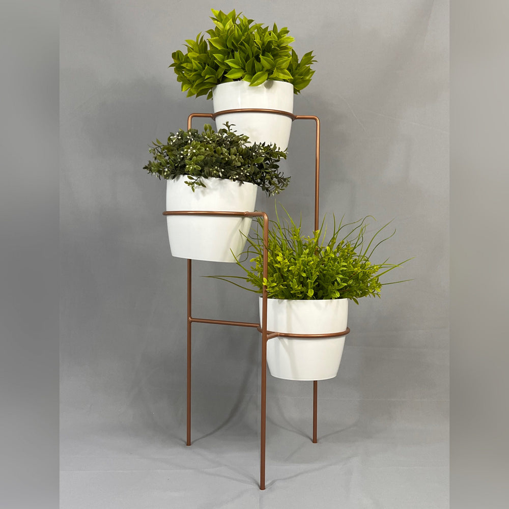Transforma tus espacios con nuestra elegante base metálica de 70 cm de altura, fabricada en varilla de acero con acabado en pintura electrostática, resistente y de fácil mantenimiento. Incluye tres materos plásticos de 17 cm de diámetro y 15 cm de altura, perfectos para tus plantas favoritas. ¿Por qué elegir nuestro set?