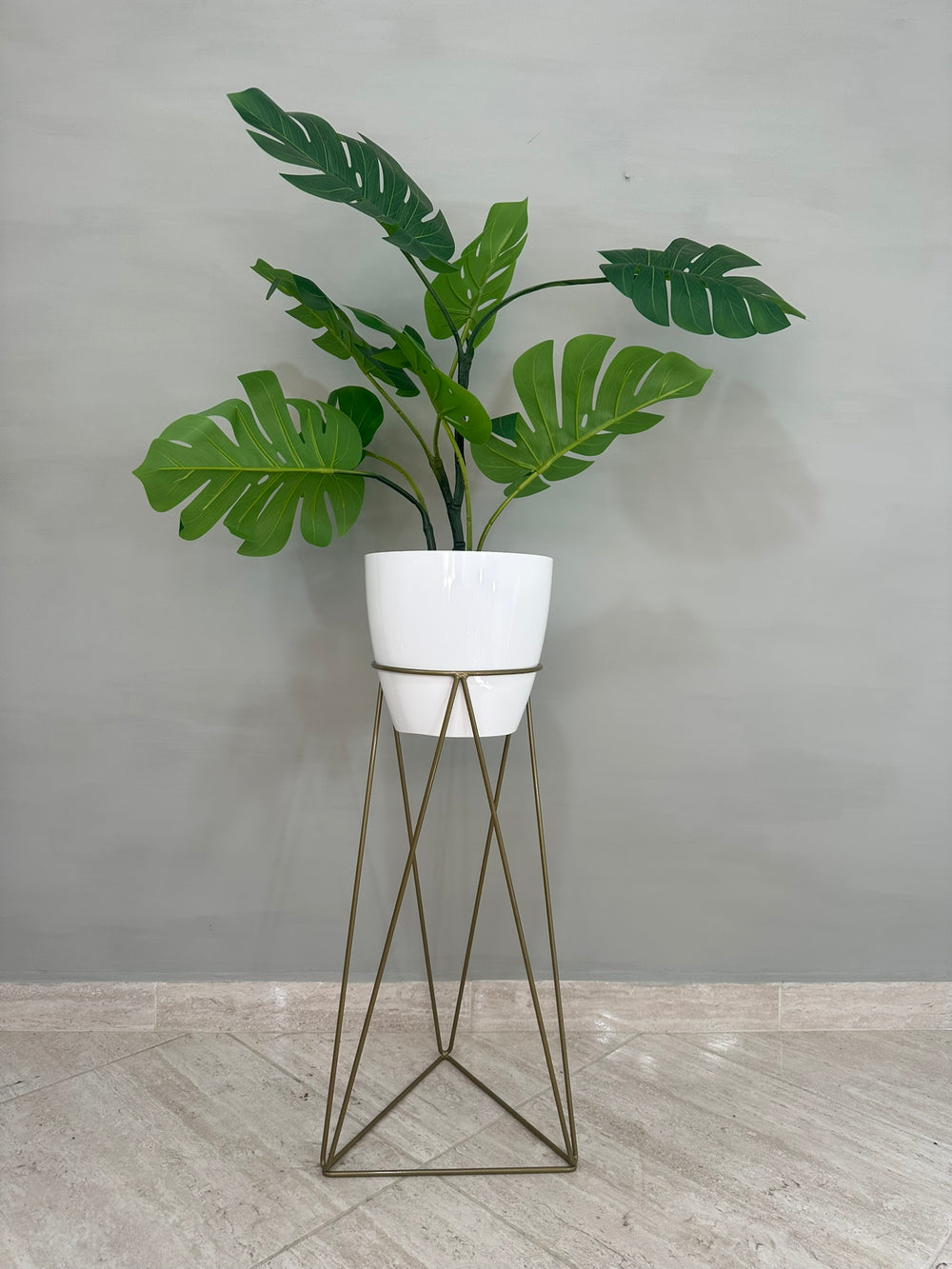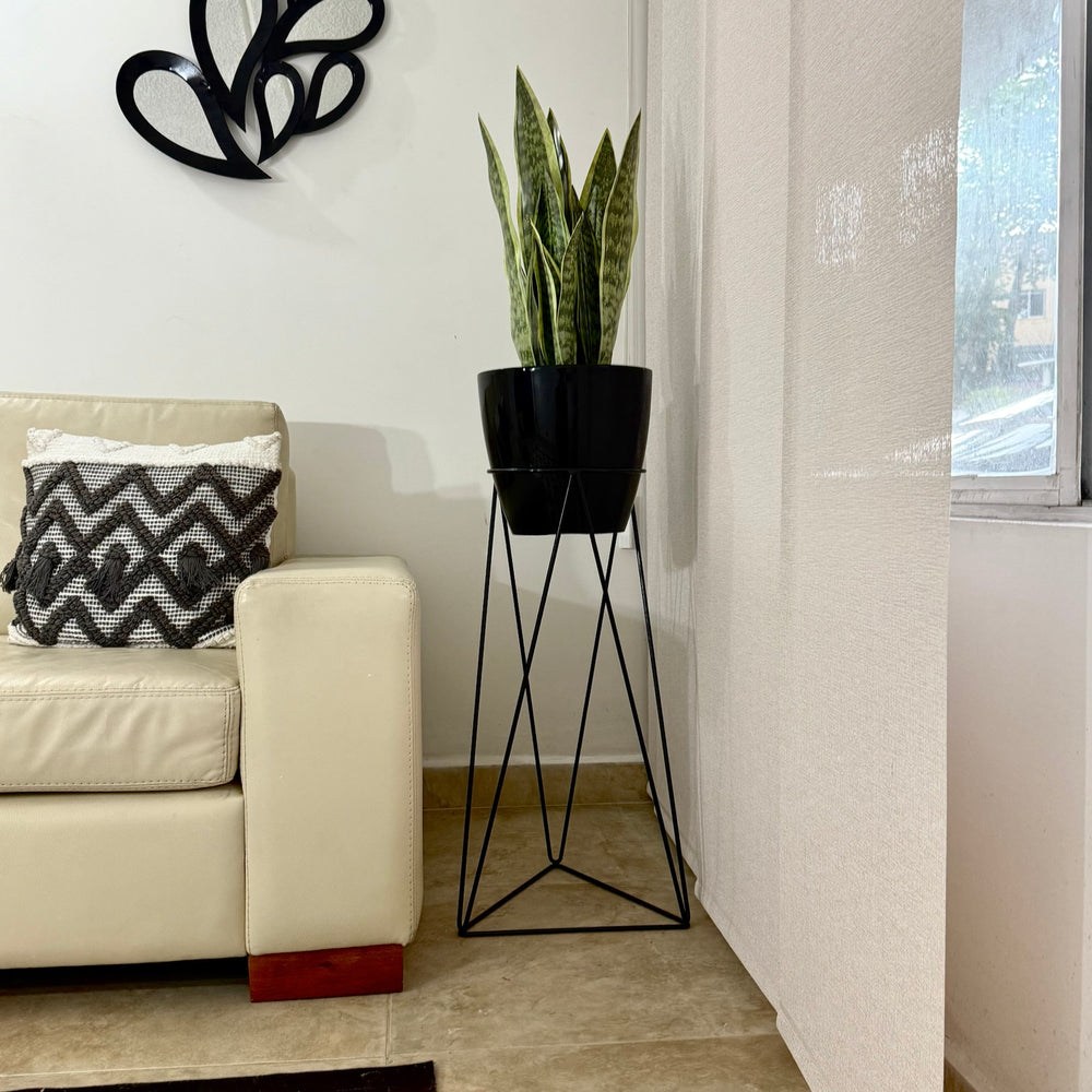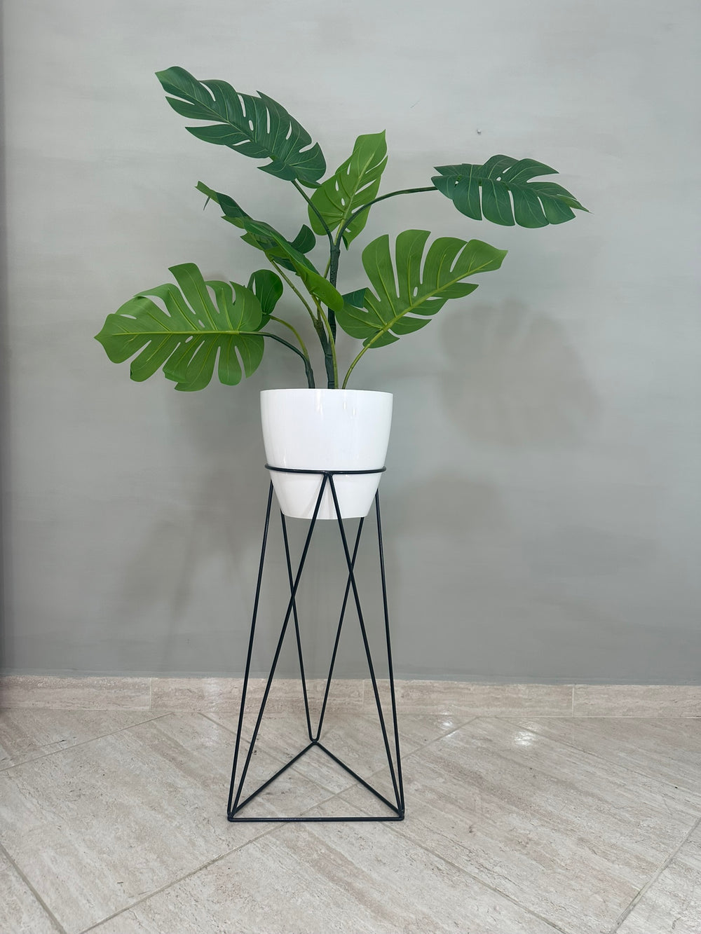 Base de 70 cm de alto, Las bases son de varilla de acero con acabado en pintura electroestática. el materos es de plastico tipo decorativo de 28 cm de diámetro y 25.5 cm de alto Incluye base y matera.