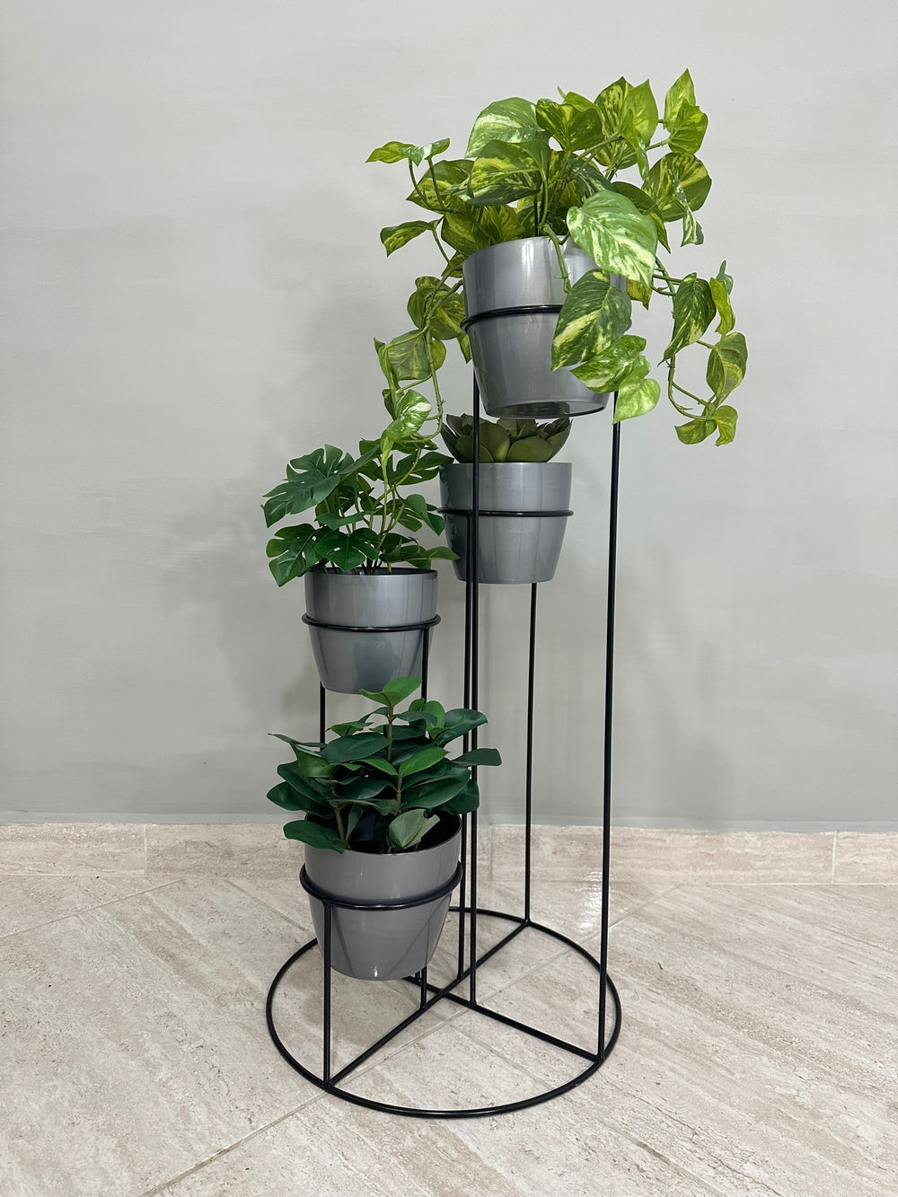 Incluye base y 4 materos plasticos.
