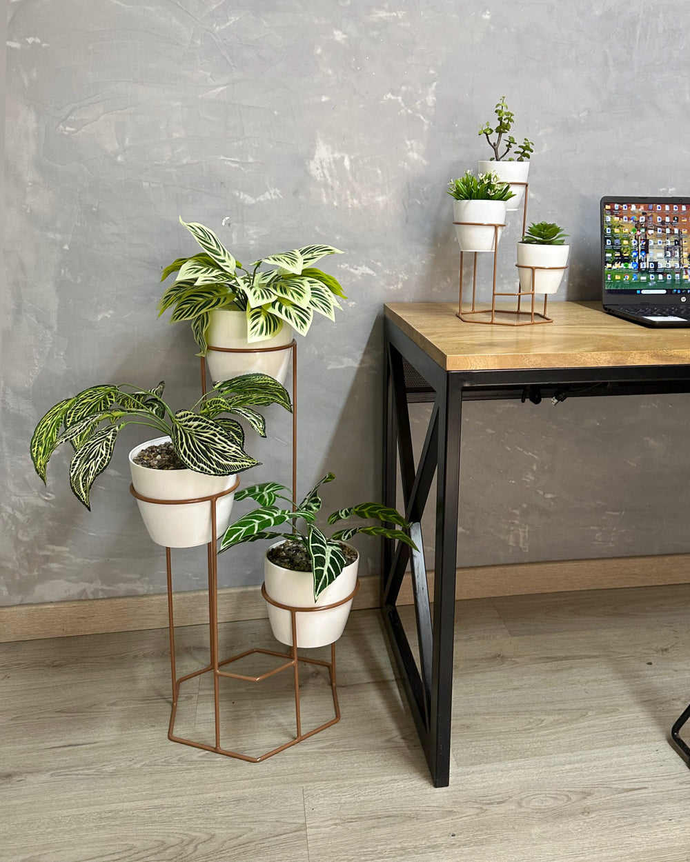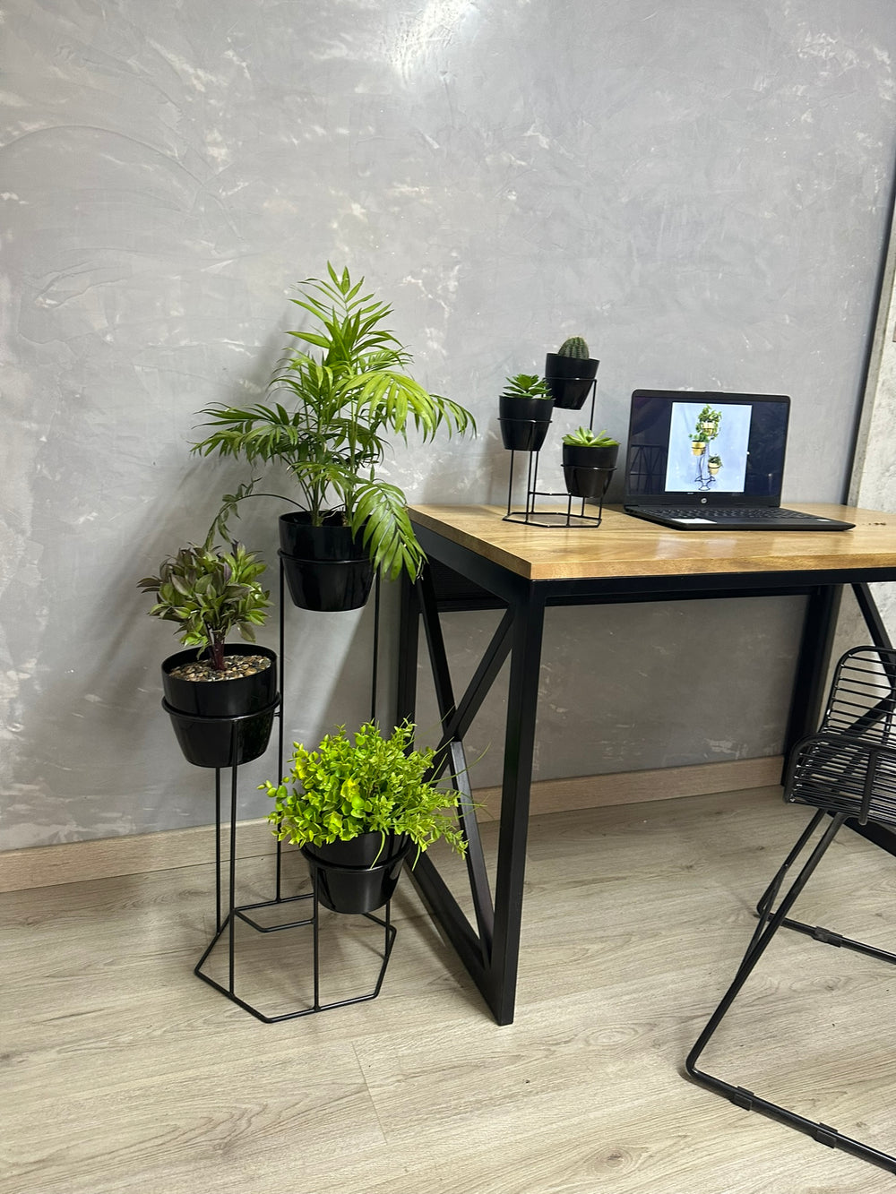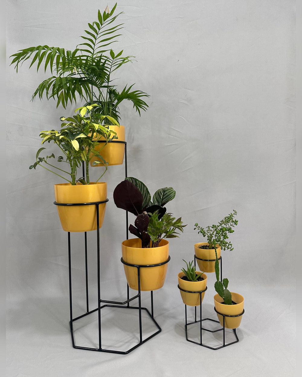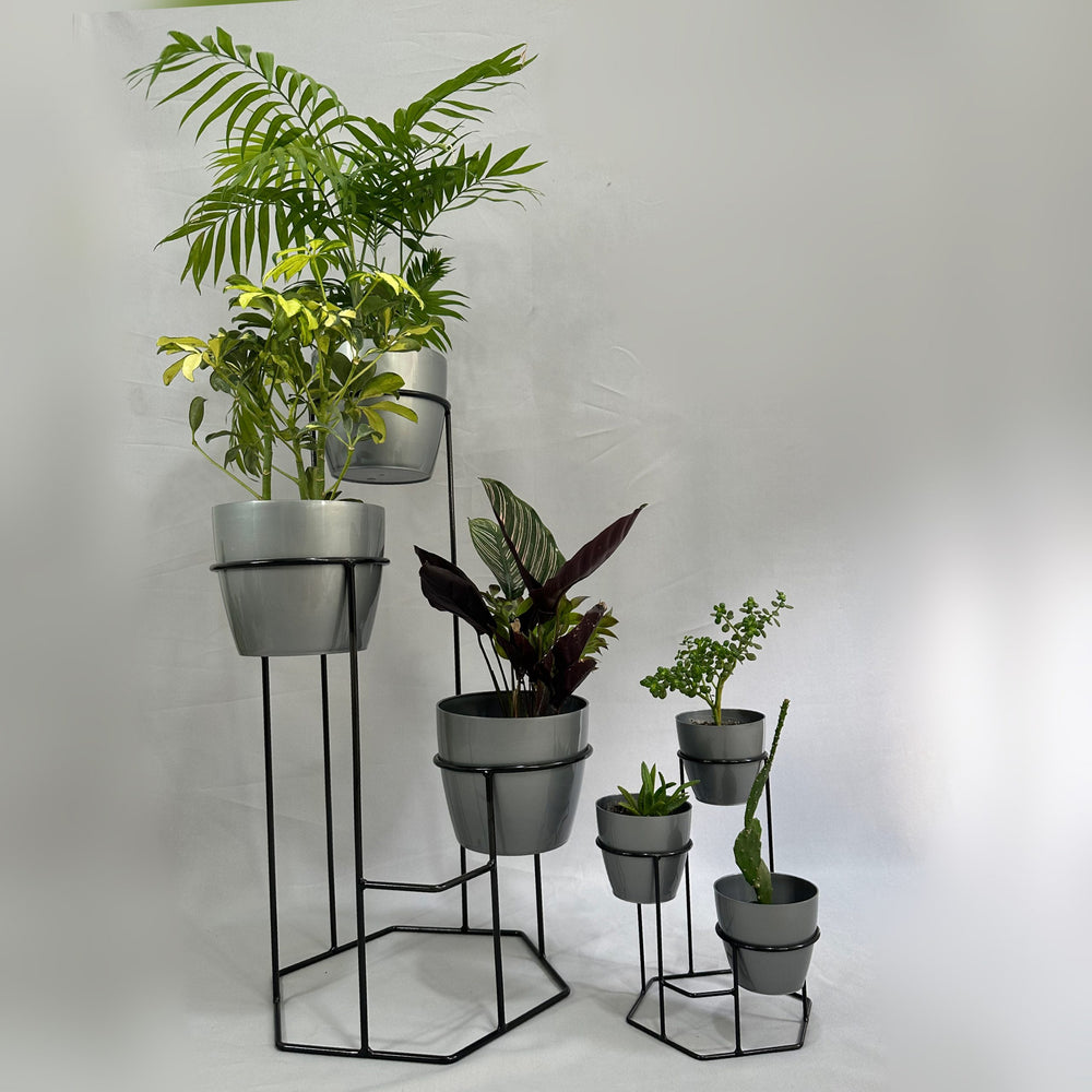 Incluye Base de piso con 3 materos y mini base con 3 materos pequeños.