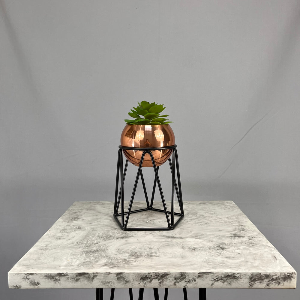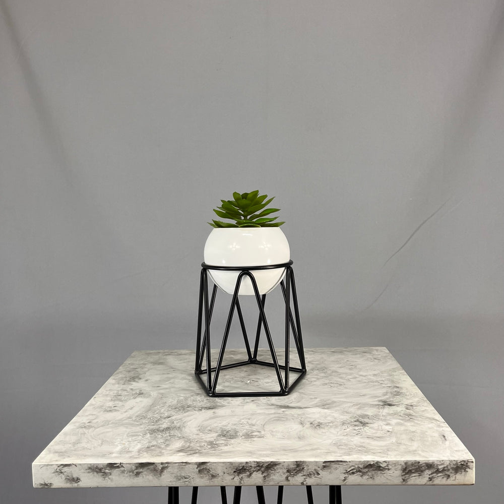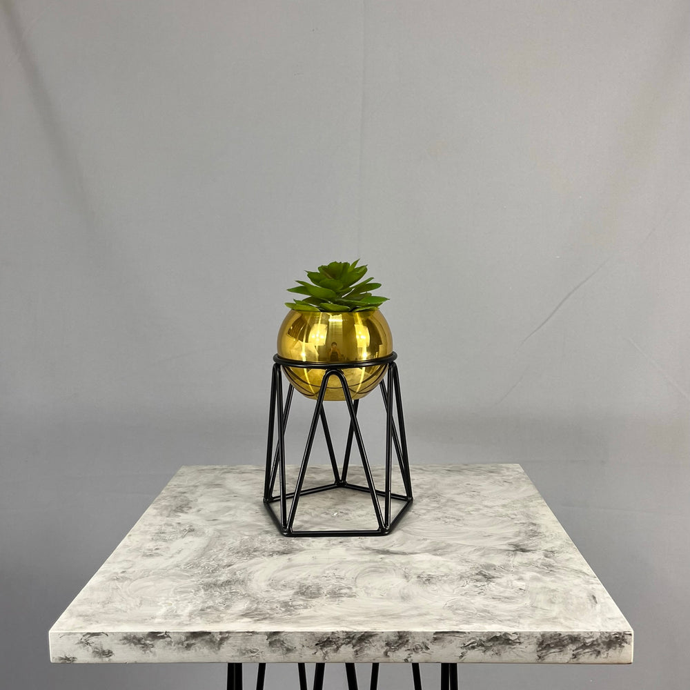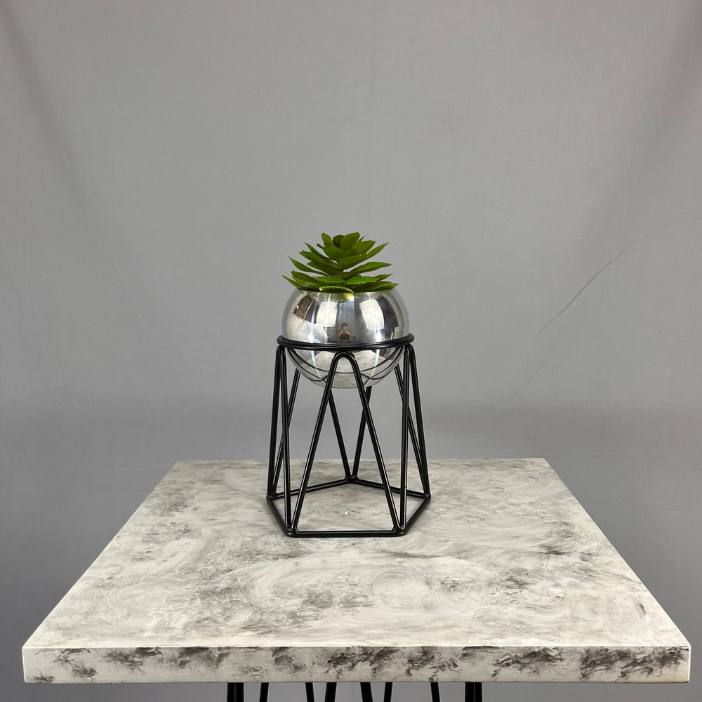 Base en Alambre con acabado en pintura electroestatica, cuenta con 15 cm de alto y un diametro de 12 cm. Matera en forma de esfera de 12 cm de diametro en Aluminio , tiene acabado en pintura  horneable. No incluye planta. Una vez realizado el pago despacharemos el pedido en los siguientes 3 días hábiles o menos