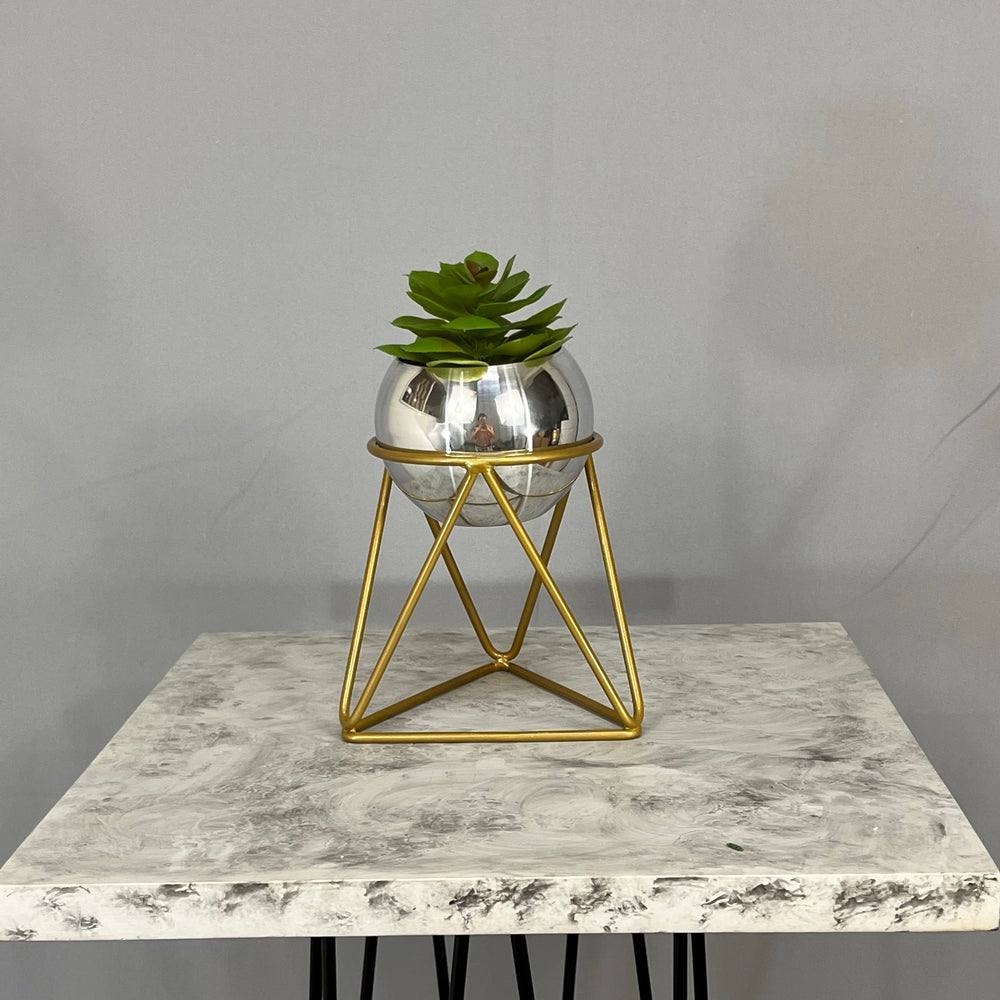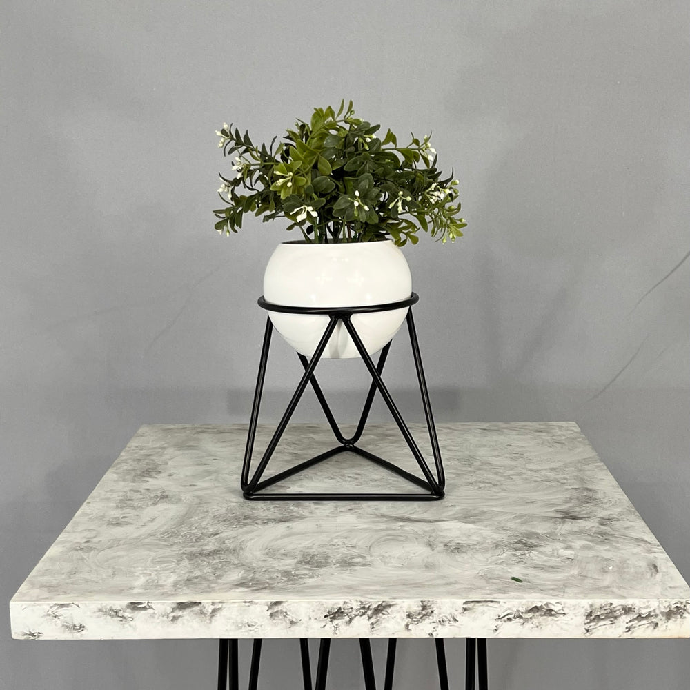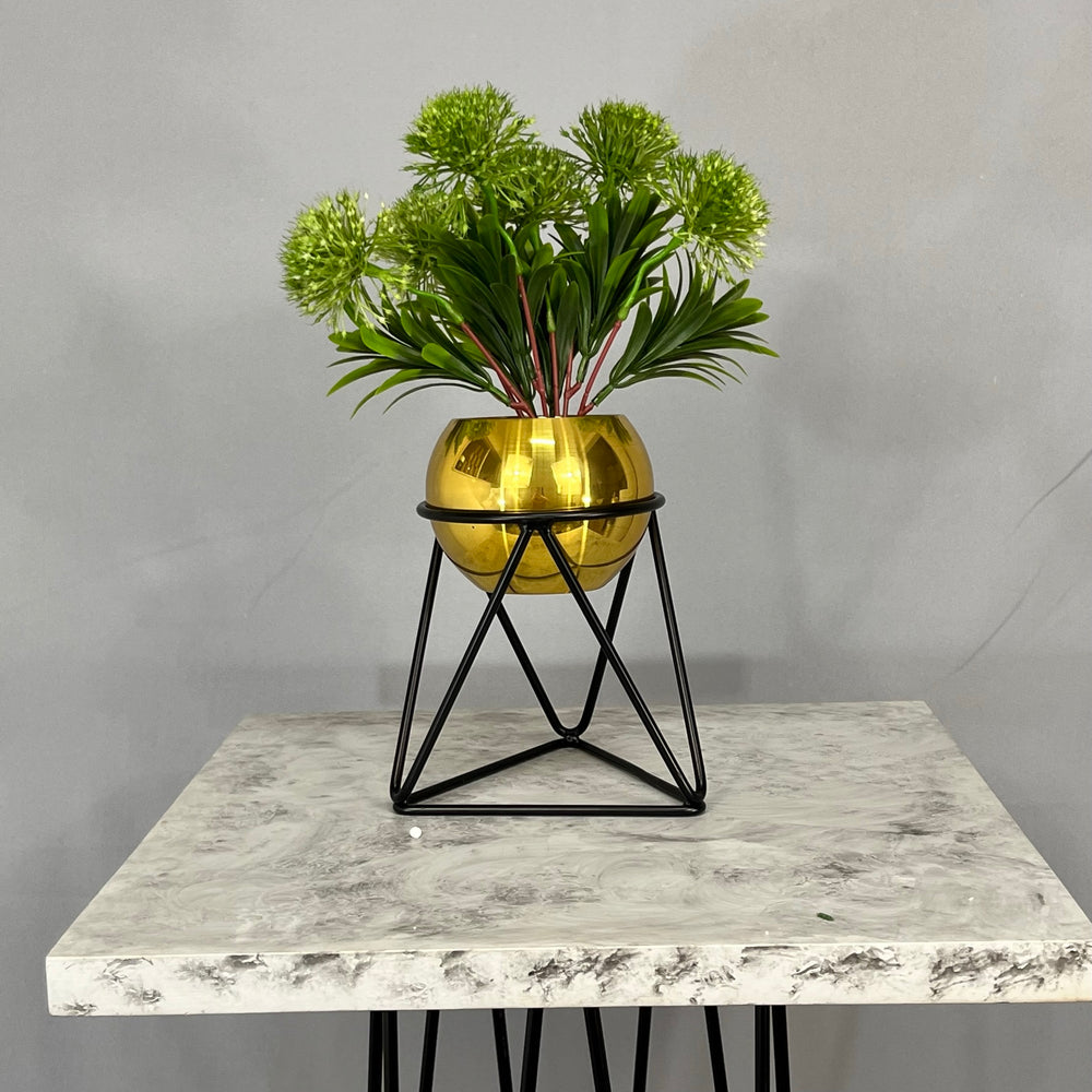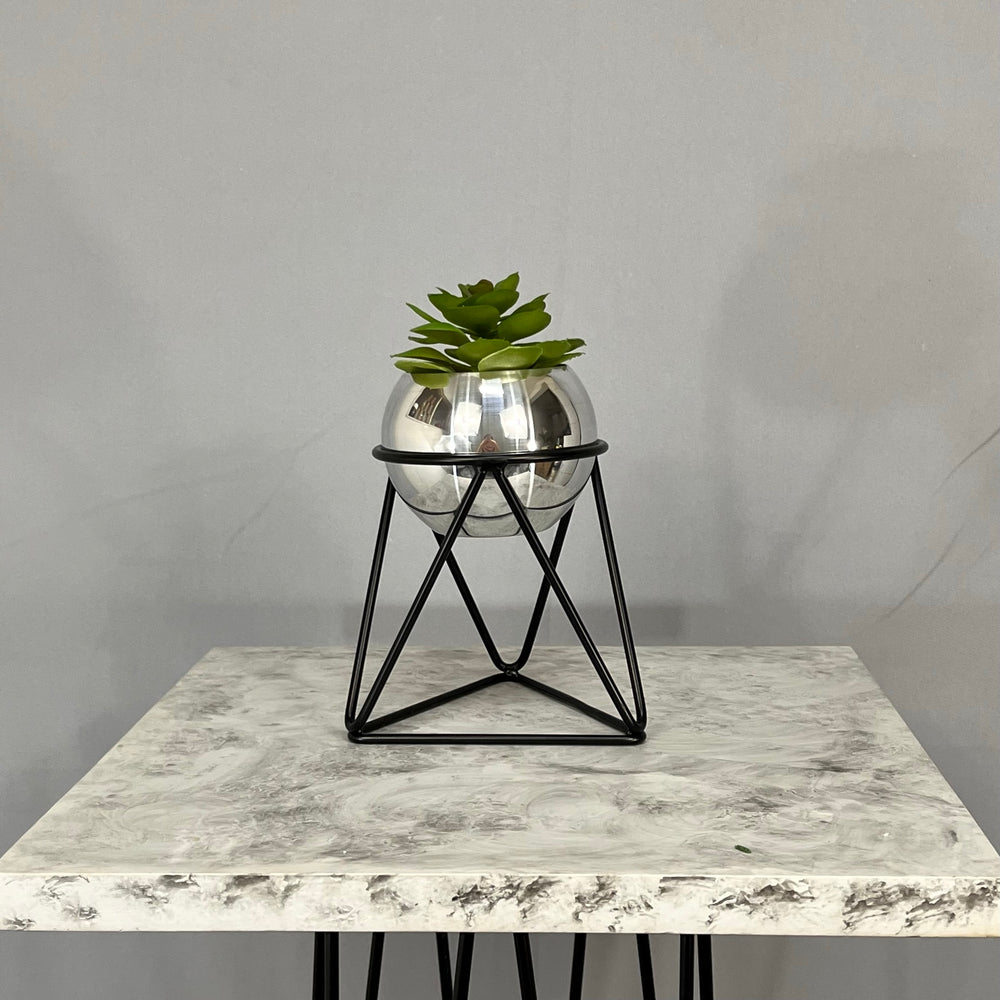 Base en Alambre con acabado en pintura electroestatica, cuenta con 15 cm de alto y un diametro de 12 cm. Matera en forma de esfera de 12 cm de diametro en Aluminio , tiene acabado en pintura  horneable. No incluye planta. Una vez realizado el pago despacharemos el pedido en los siguientes 3 días hábiles o menos