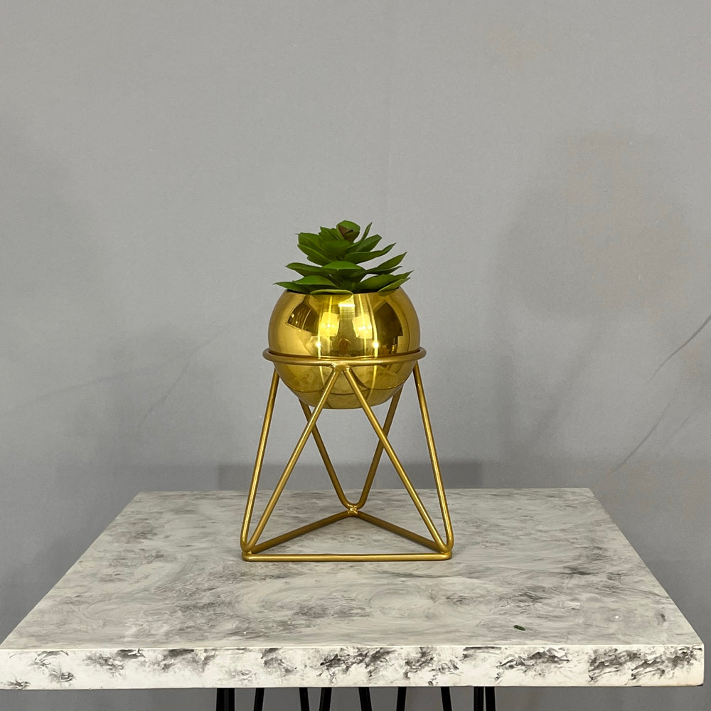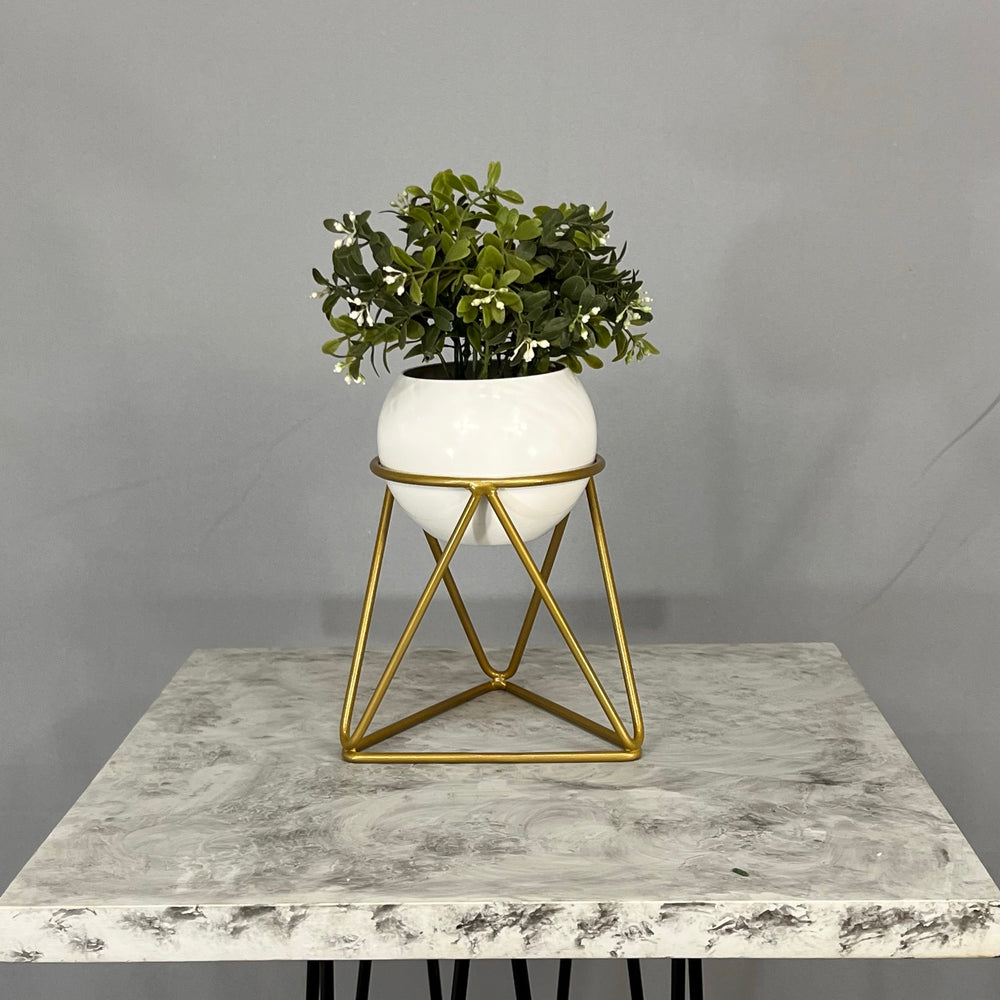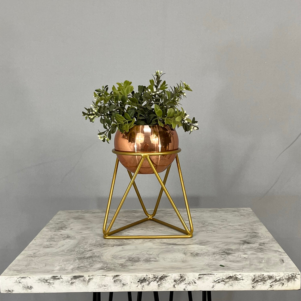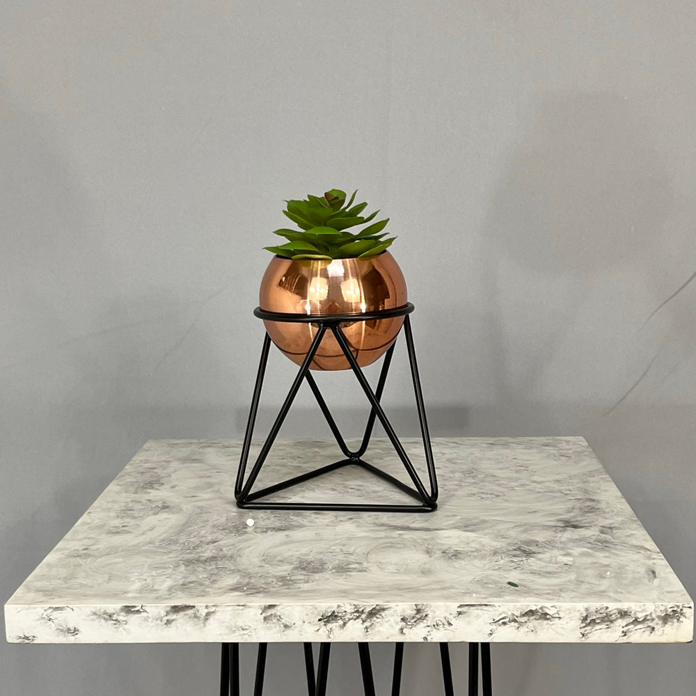 Base en Alambre con acabado en pintura electroestatica, cuenta con 15 cm de alto y un diametro de 12 cm. Matera en forma de esfera de 12 cm de diametro en Aluminio , tiene acabado en pintura  horneable. No incluye planta. Una vez realizado el pago despacharemos el pedido en los siguientes 3 días hábiles o menos