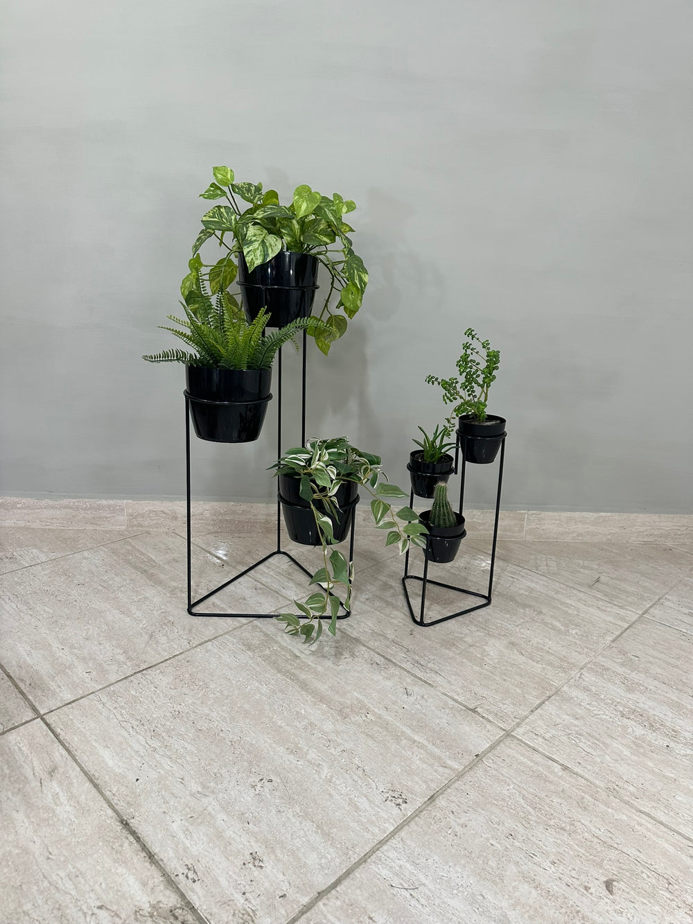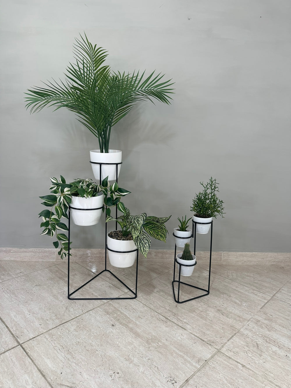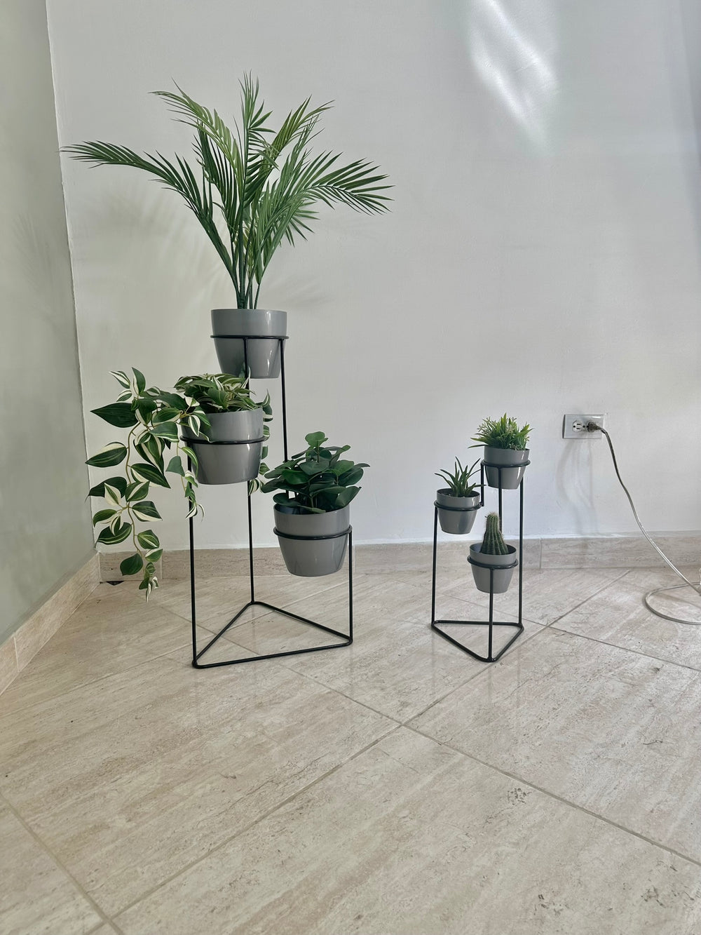 Incluye Base de piso con 3 materos y mini base con 3 materos pequeños.