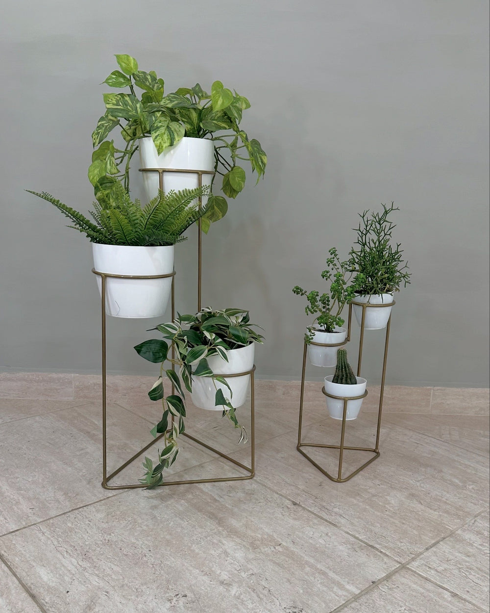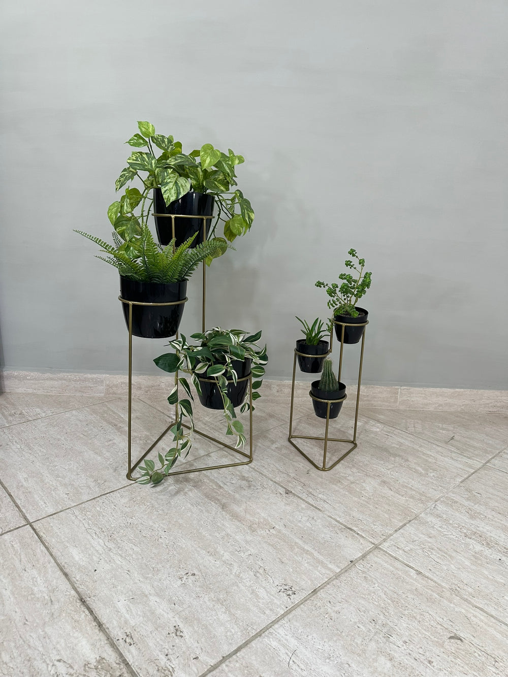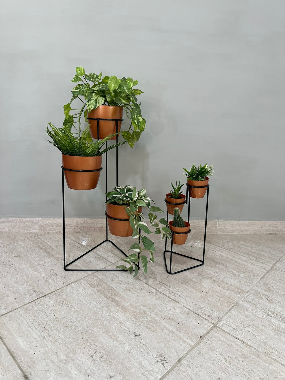 Incluye Base de piso con 3 materos y mini base con 3 materos pequeños.