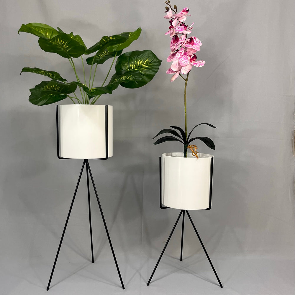 Las bases miden 70 y 50 cm de alto , son hechas en varilla de acero con acabado en pintura electroestatica. Materos de 20 cm de alto x 20 cm de diámetro en aluminio.   Incluye dos bases y dos materas.   Una vez realizado el pago despacharemos el pedido en los siguientes 2 días hábiles o menos
