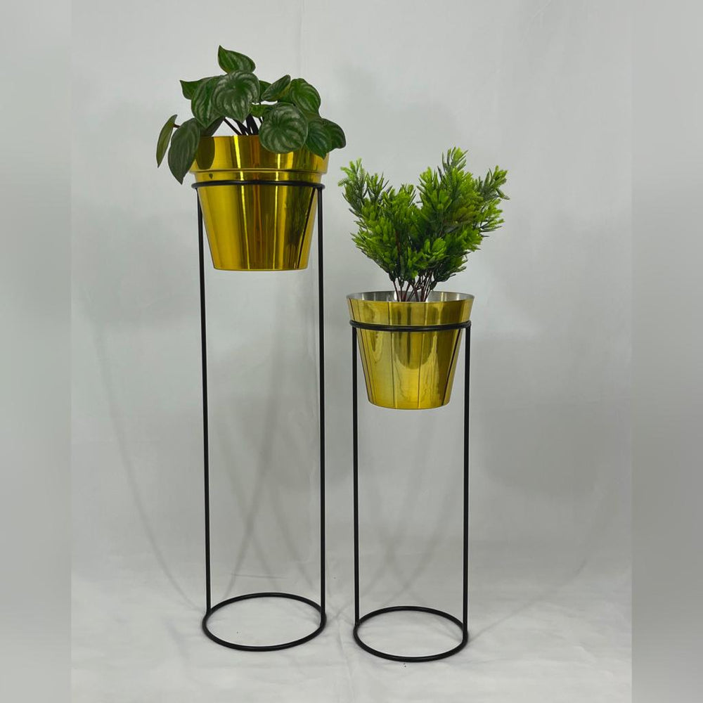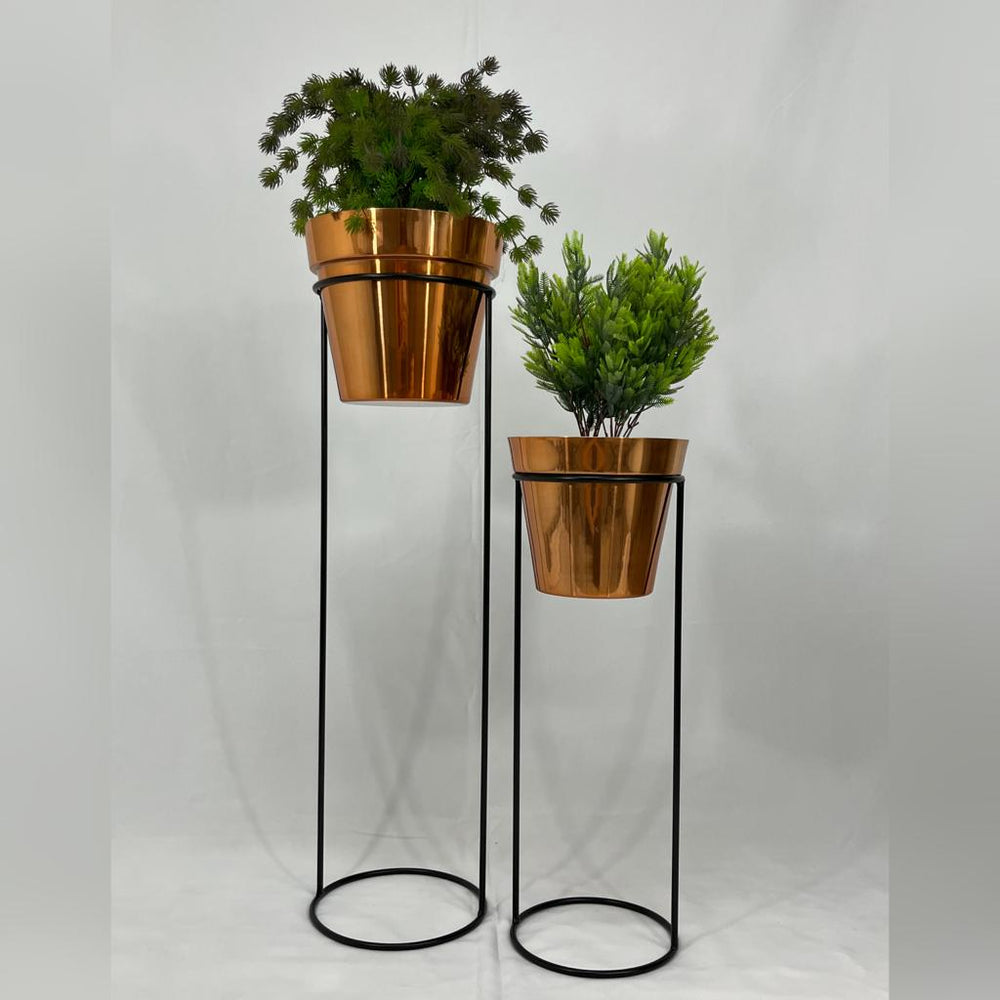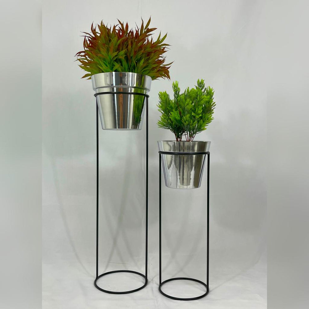 Bases de 70 y 50 cm de alto en varilla de acero con acabado en pintura electroestatica Materos de 22 y 18 cm de diametro por 22 y 18 cm de alto en Aluminio con acabado en pintura liquida horneable. Incluye dos bases y dos materos , sin plantas. Una vez realizado el pago despacharemos el pedido en los siguientes 5 días hábiles o menos