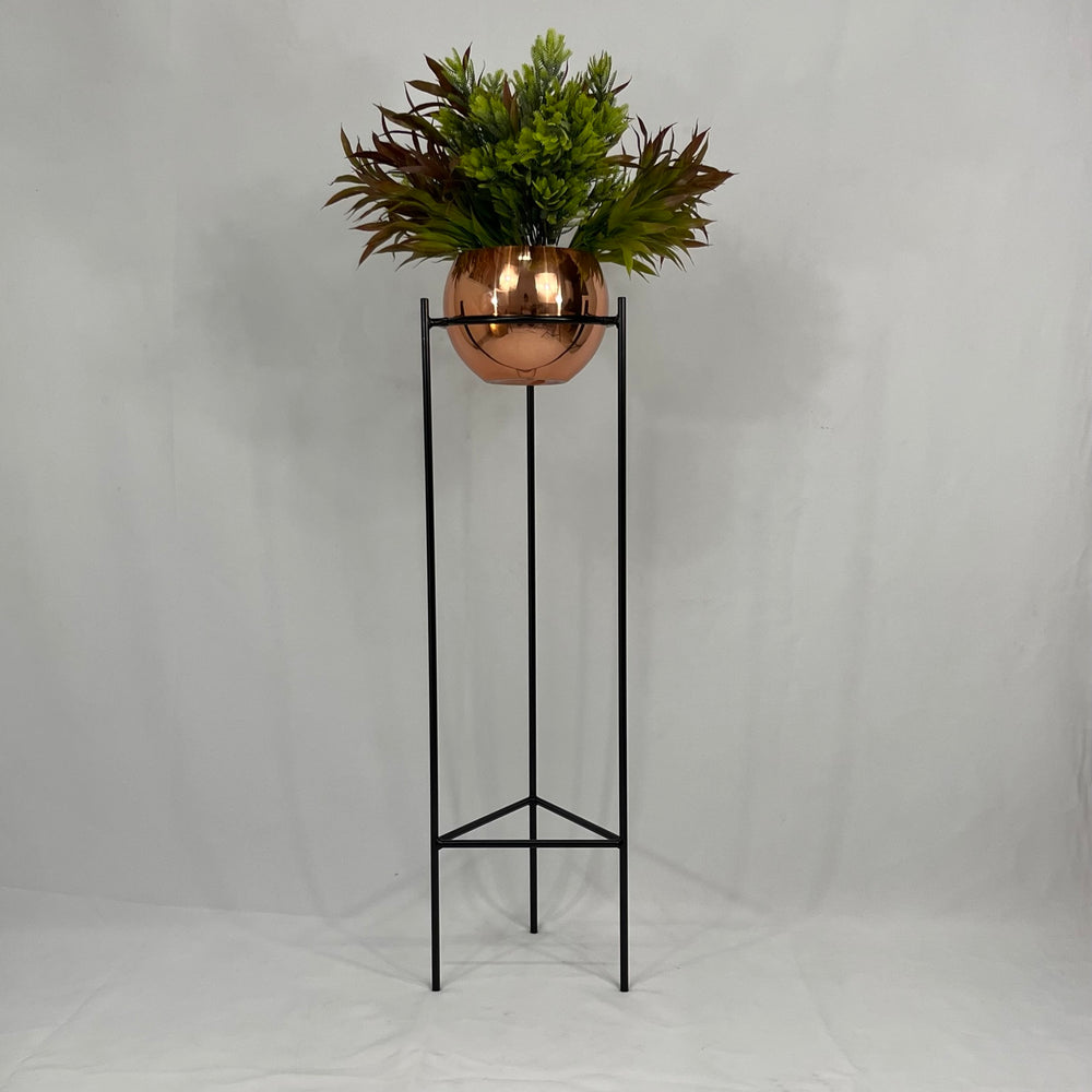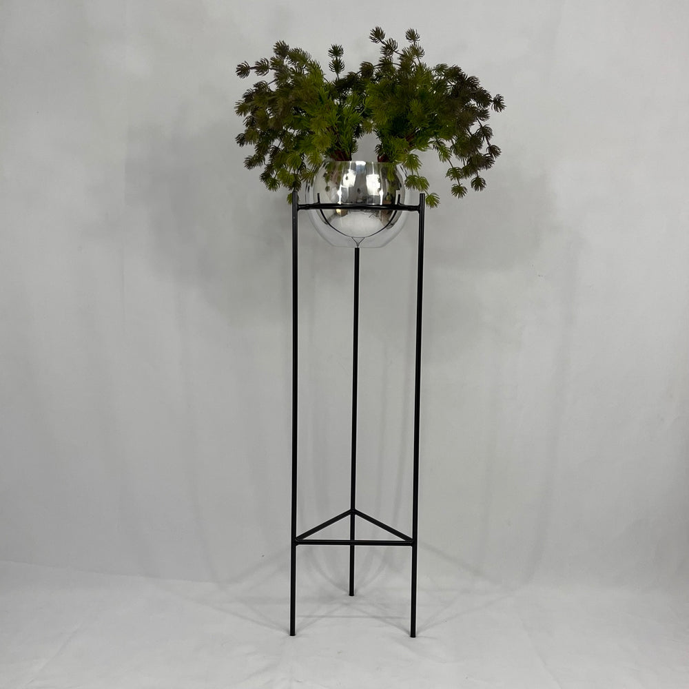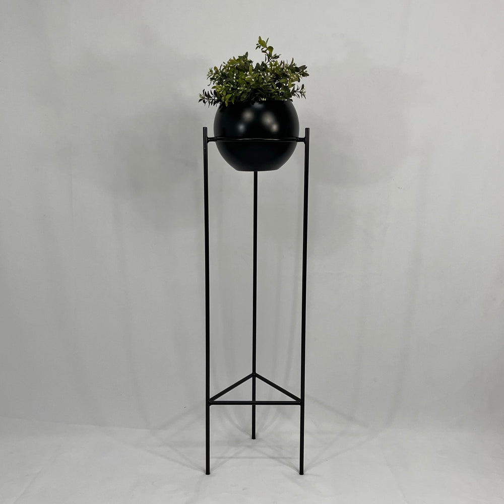 Las bases miden 70 cm de alto, acabado en pintura electroestatica. Los materos en forma de esfera son de aluminio, miden 16.5 cm de diametro por 12 cm de alto.    Incluye base y matera.
